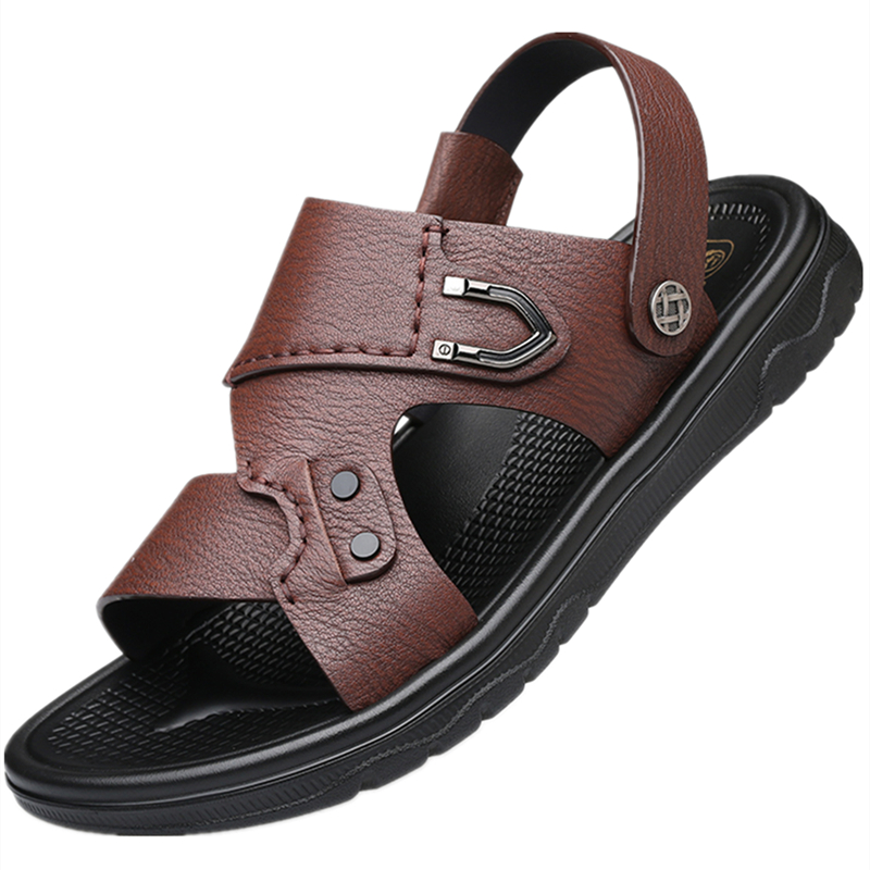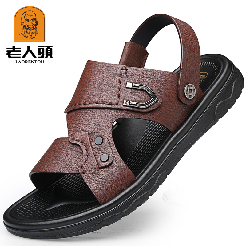 Old man's head sandals men's 2022 summer leather casual sandals and slippers soft-soled leather beach shoes men's sandal shoes tide