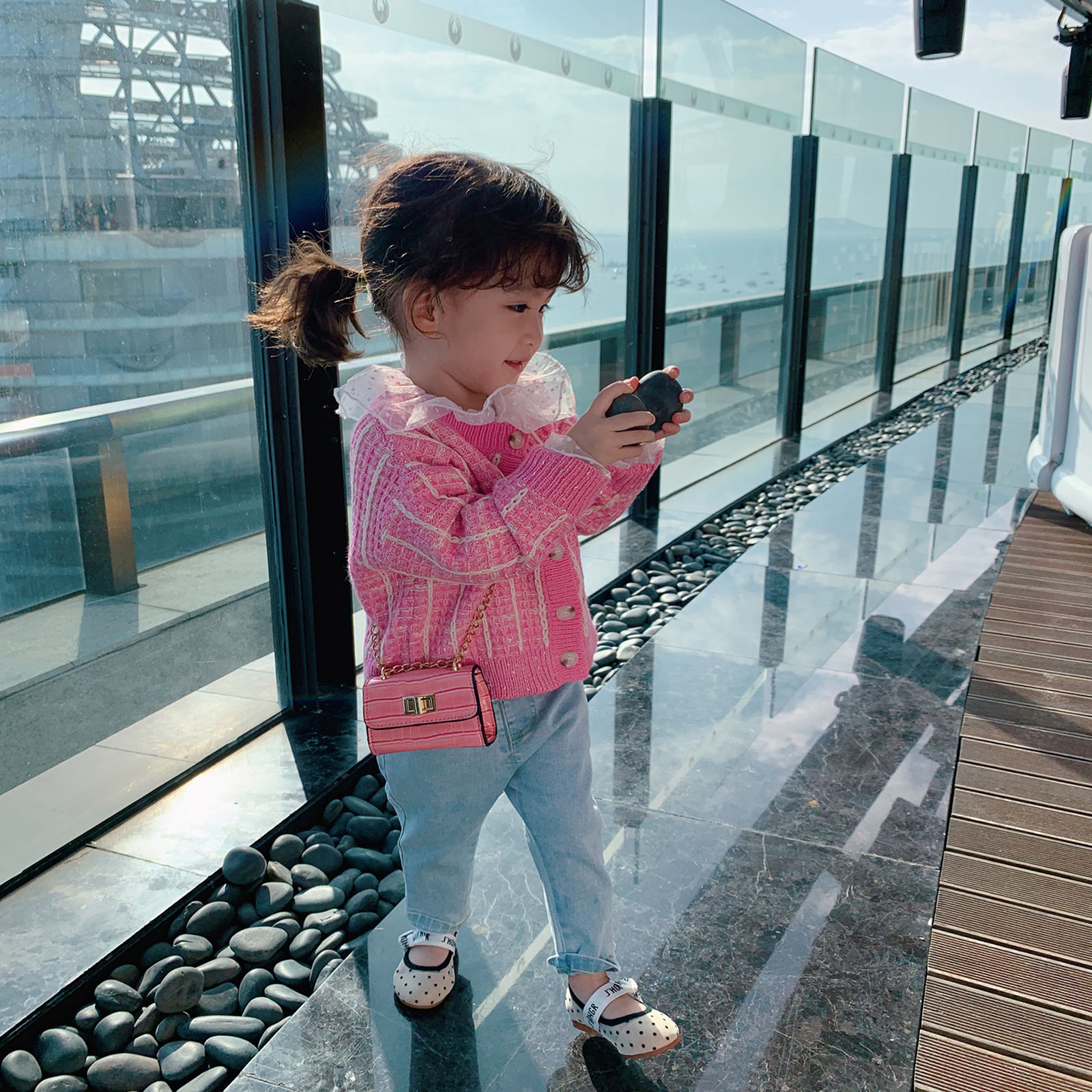 Baby Jacket Woman Spring Autumn New Foreign Pie Trendy Blouse Children Han Version Online Red Girl Small Savour Knitwear Knitwear