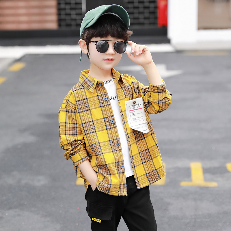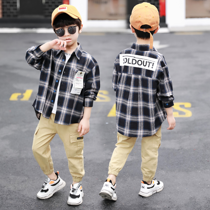 Boys spring and autumn Western style suits Korean version of the big children's plaid shirts handsome overalls trendy cool boys autumn clothes