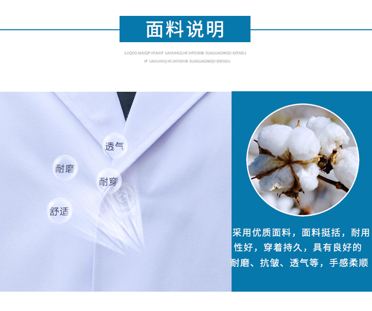 White coat long-sleeved doctor men's and women's long and short-sleeved lab coat graduate student chemistry work clothes free printing