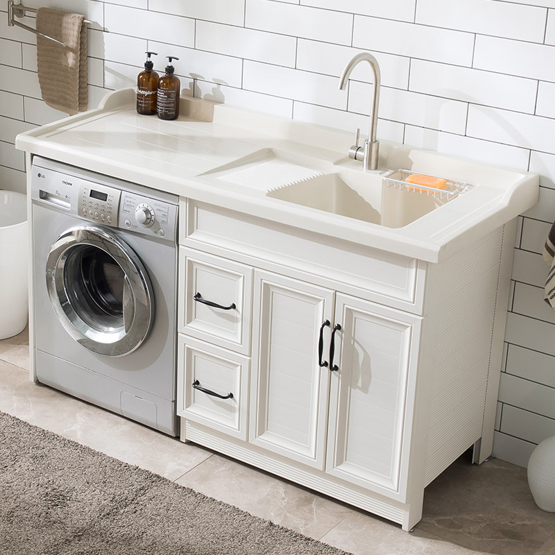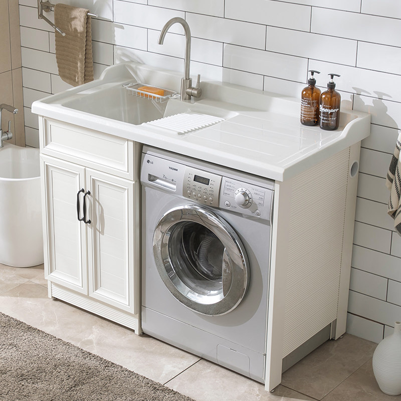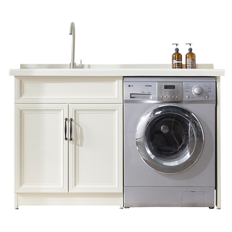 Space Aluminum Washing Machine Cabinet Quartz Stone with washboard Laundry pool slot Balcony Drum Washing Machine Companion Cabinet Customize