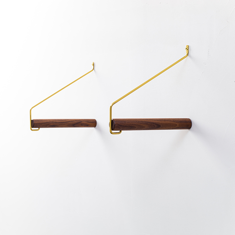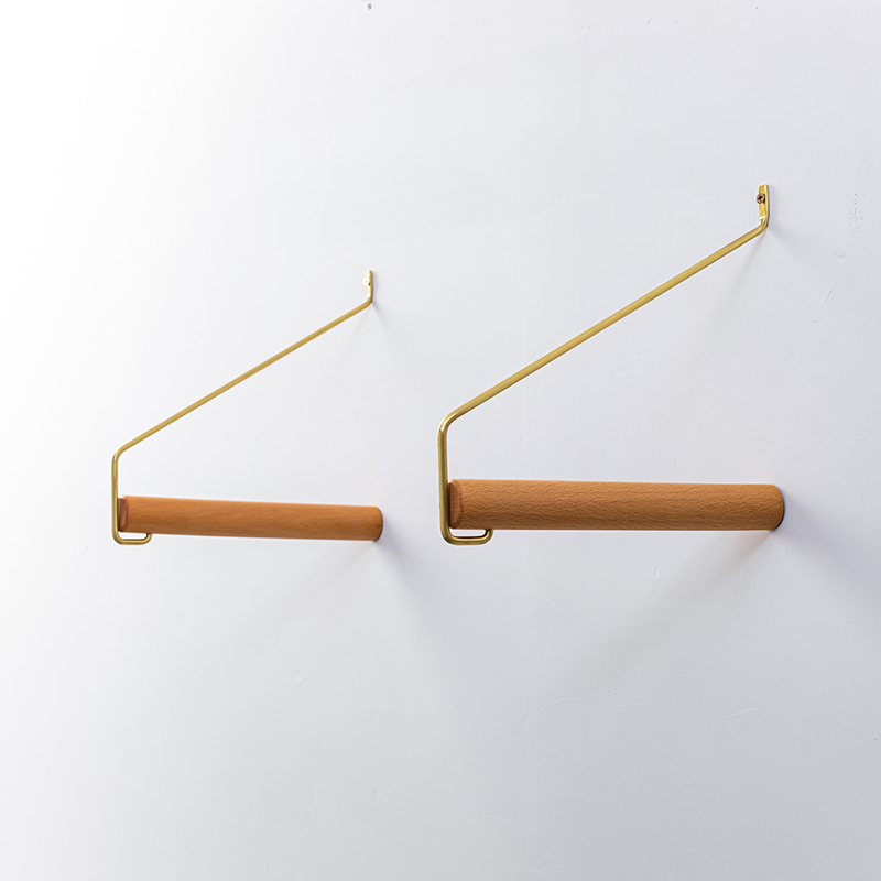 Japanese-style black walnut solid wood coat rack wall hanging brass creative hanger space-saving clothing store wall rack