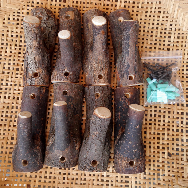 Leather solid wood hook clothes hook restaurant decorative wall hook entry porch tree branch hook homestay decorative hook