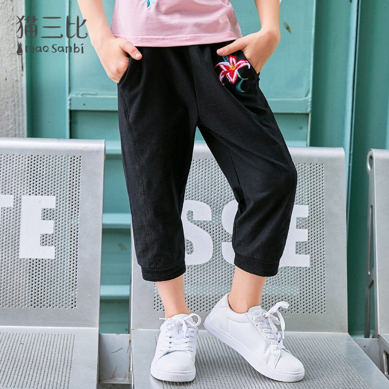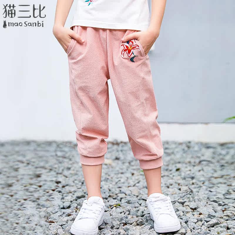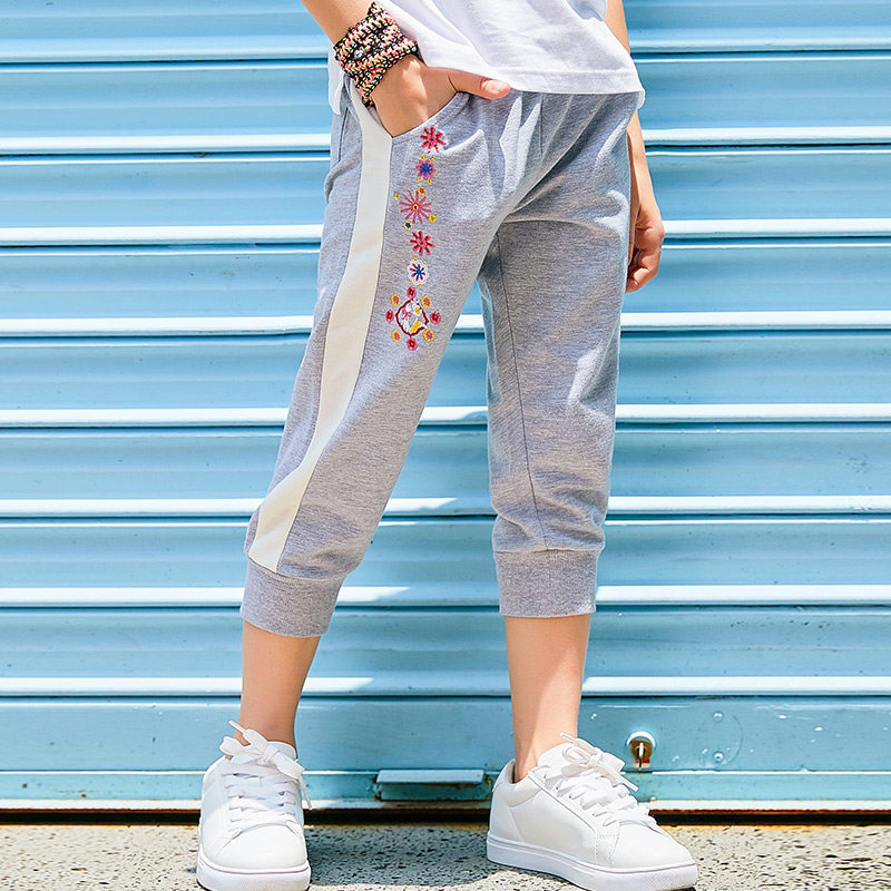 Girls cropped pants thin section summer 2022 children's sports pants daddy casual pants big children's pants loose embroidery