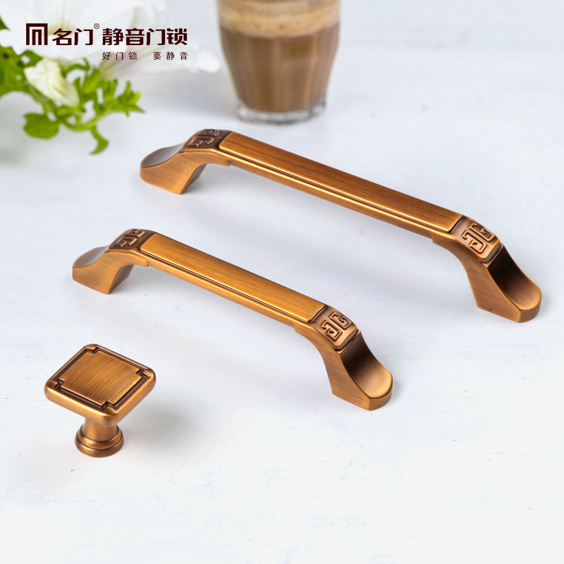 Famous door New Chinese small handle cabinet door Huanggu single-hole imitation ancient bronze drawer minimalist small overall cabinet wardrobe handle hardware