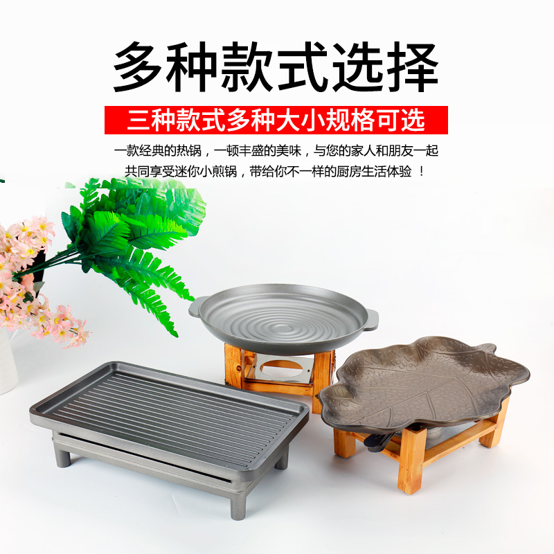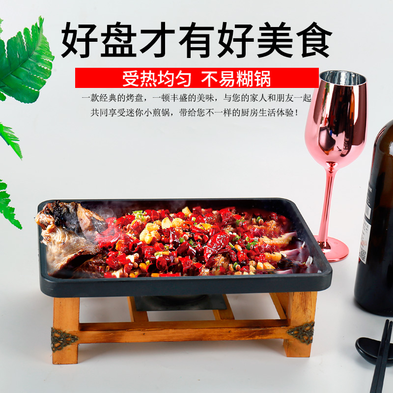 Korean-style non-stick small baking dish rectangular alcohol stove dry pot barbecue grilled fish plate dining room bamboo ceramic plate barbecue plate