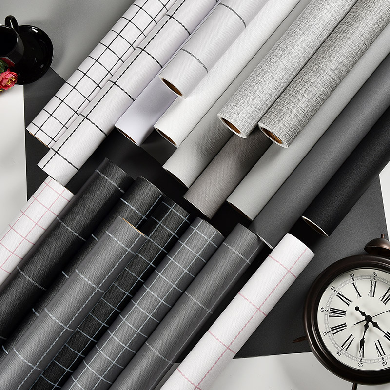 Gray 10 m wallpaper self-adhesive Nordic style waterproof dormitory wallpaper bedroom desktop wardrobe sub furniture refurbished sticker