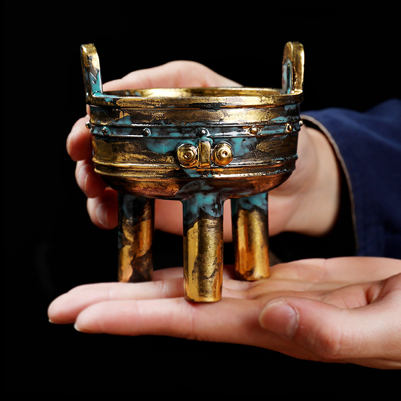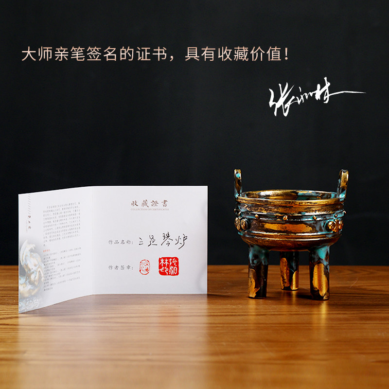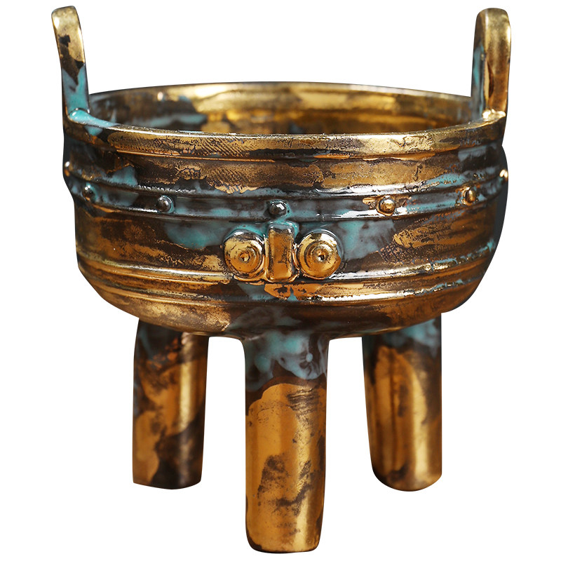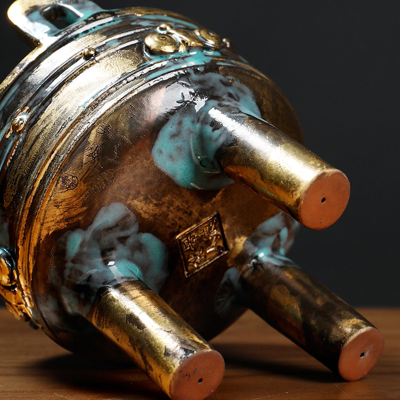 Oriental earth ceramic imitation antique small wire fragrant incense stove swinging piece Zen Serie tea room Space ancient bronze color Three-foot violin stove