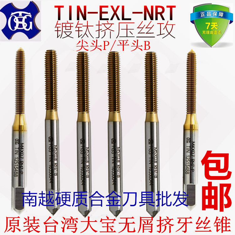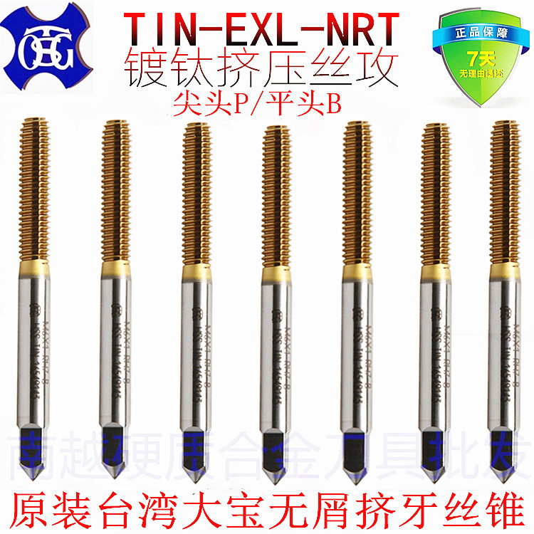 Taiwan's big treasure TOSG short tooth plated titanium extrusion screw tapping screw tap TIN-EXS-NRT M3X0 5P pointed B flat head