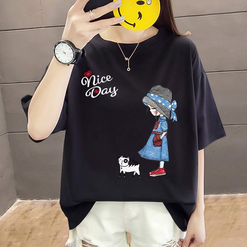 200 catty little sister fat boy big size female dress student 300 catty printed round collar short sleeve T-shirt 240 fat pussy