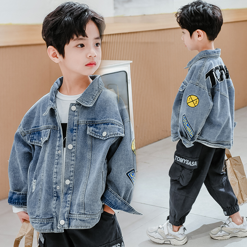 Children's Spring and Autumn Wear 2022 New Trend Internet Celebrity Fried Street Big Boys' Denim Jackets jackets on clothes jacket Boys