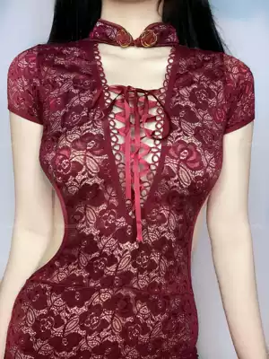 Nunnally: Warlord wide sexy cheongsam cheongsam lace hot perspective uniform lure lingerie nightdress set Sao