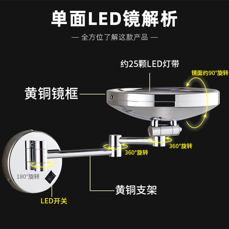 LED bathroom beauty mirror with light Single-sided folding makeup mirror Telescopic mirror HD magnifying glass wall-mounted free hole