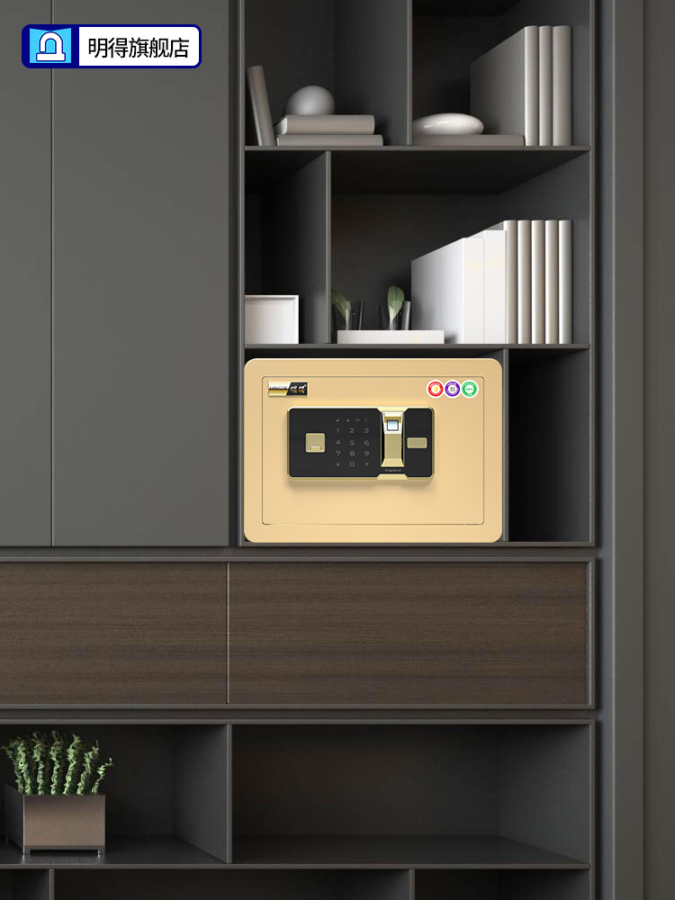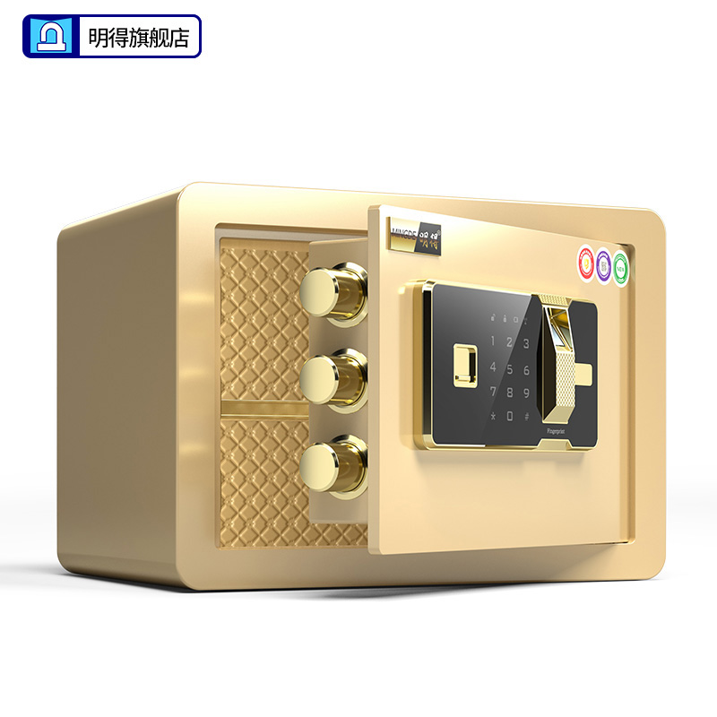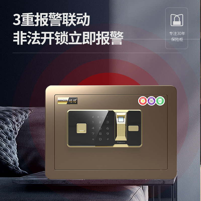Mingde safe home small 25cm30cm office fingerprint password bedside table all steel anti-theft into the wall into the wardrobe mini invisible safe new alarm safe deposit box bedside table