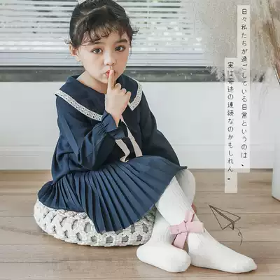 Children's tights spring and autumn new medium-thick girls ' inner pants and outer wear Korean baby white bow jumpsuit