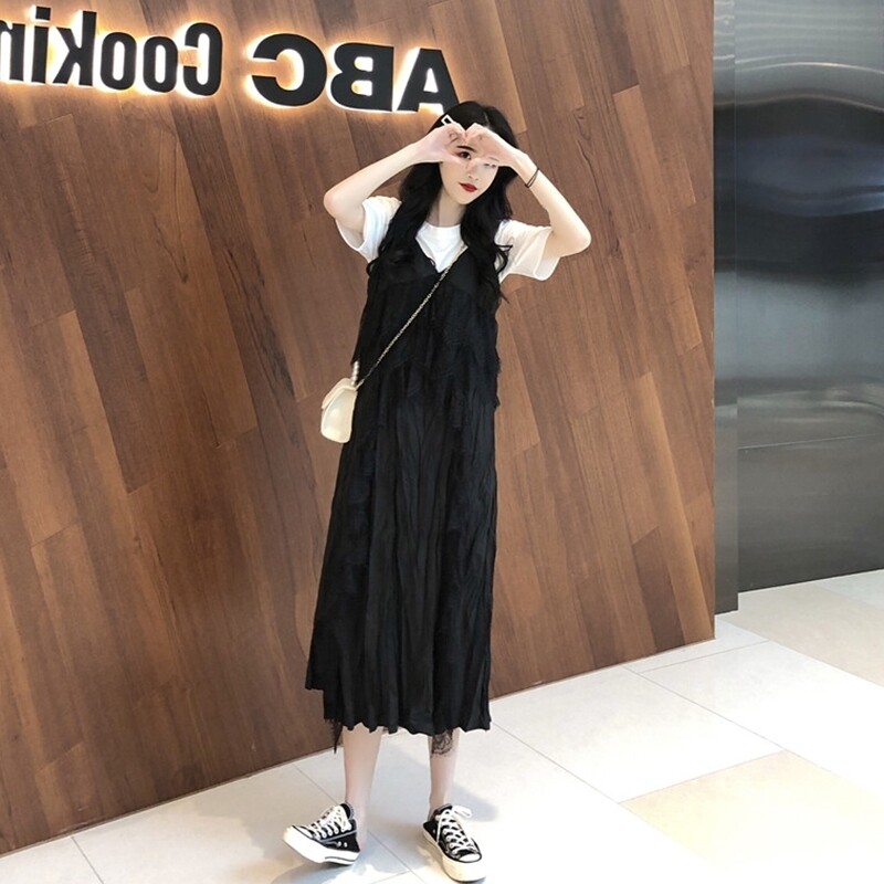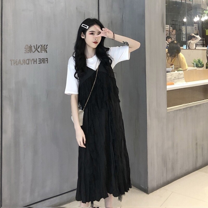 Slightly fat girls wear a hitch summer two sets of covered meat large size hanging band dress fat mm cover with slim fit women's summer