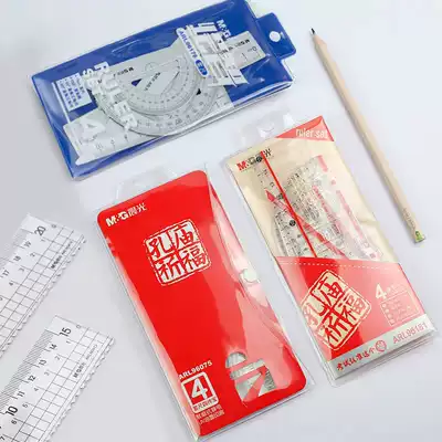 Morning light ruler multi-functional primary and secondary school stationery drawing four-piece ruler triangle protractor test set ruler children's painting Confucius Temple praying series drawing Special