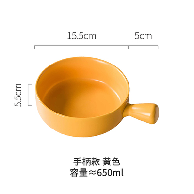 Nordic baking bowl with handle Baked rice bowl instant noodle bowl salad bowl ceramic oven bowl net red plate fruit salad