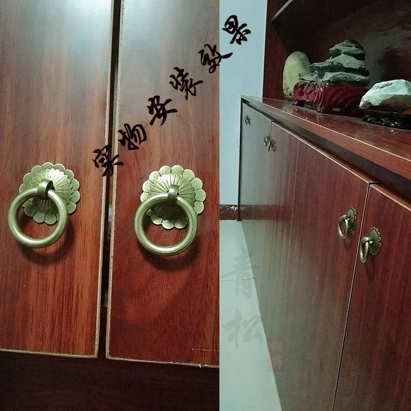 Full copper new drawer copper handle retro Chinese pure bronze imitation ancient clothes shoe cabinet door overall cabinet traditional Chinese medicine cabinet copper handle