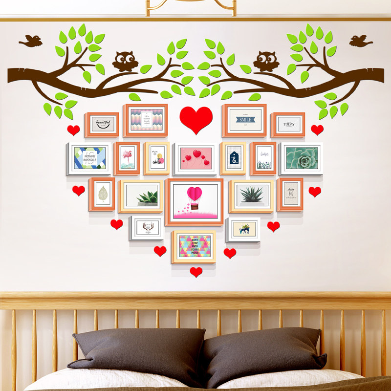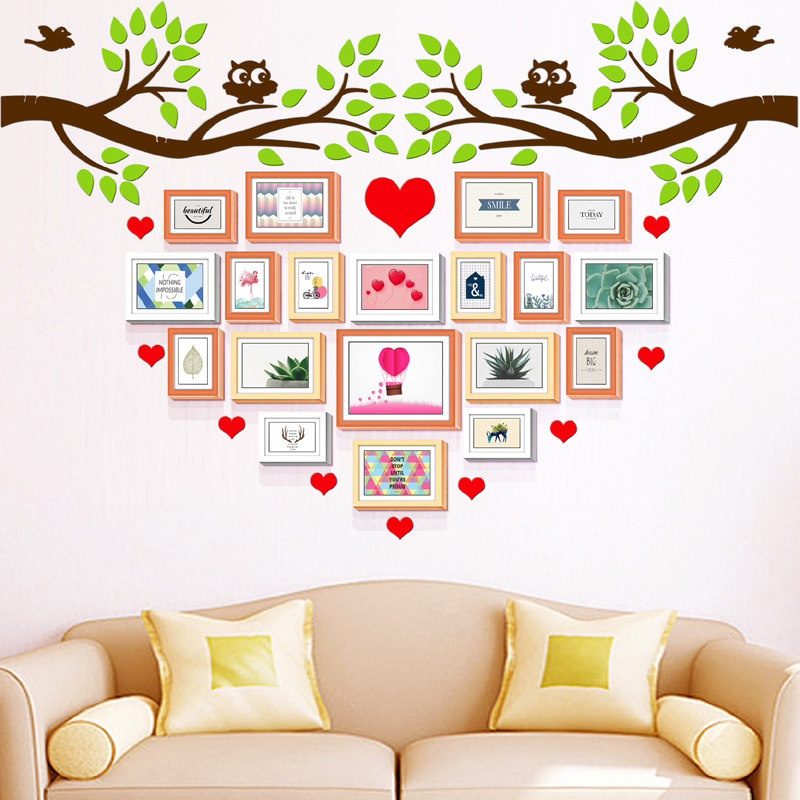 Company photo wall decoration acrylic three-dimensional hanging wall photo frame combination creative photo wall love shape photo tree shape