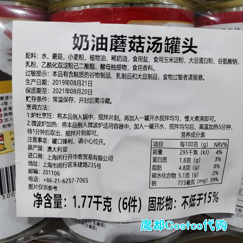 Shanghai Costco Cream Mushroom Soup Canned Pumpkin Soup Sweet Corn Soup 1 Jar Convenience Food Open Jar Ready-to-eat
