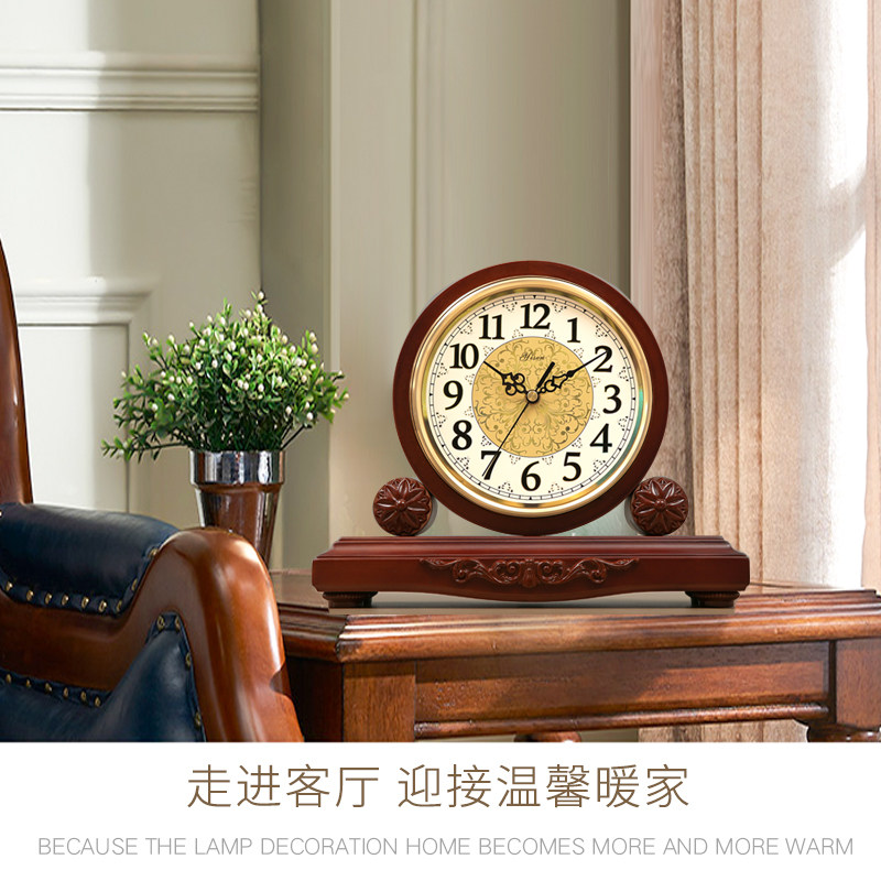 Yisen European-style solid wood seat clock living room Creative and watch large number retro seat clock clock muted American quartz clock