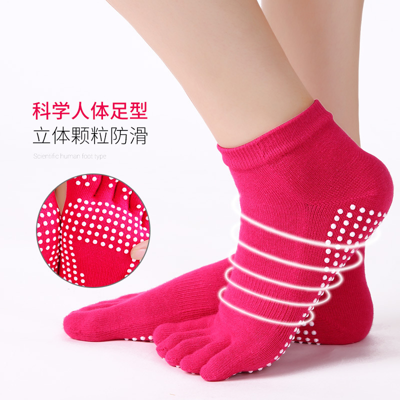 Yoga Five Finger Socks Woman Pure Cotton Professional Reflexology Sole Massage Suction Sweaty Anti-Slip Summer Thin Sports Fitness Socks