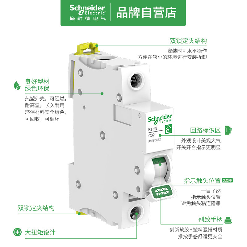 Schneider R9 air switch 1P N breaker 2P Total open 3P Home 4P Protection electric brake 16A20A40A63A