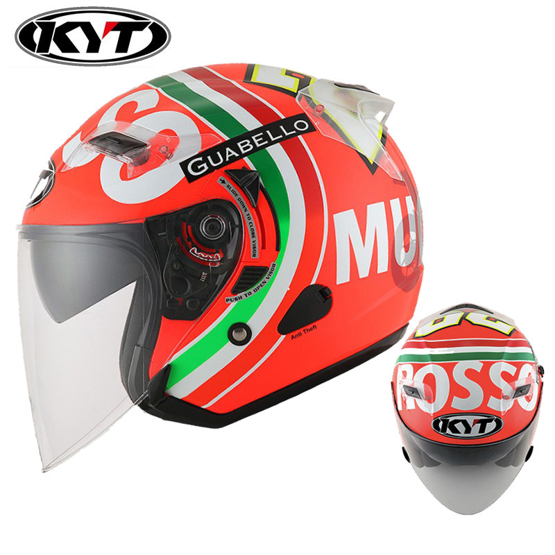 Italian KYT Locomotive Safety Helmet Locomotive Double Lenses Men And Women's Half Armor Summer Light Sunscreen Big Size White