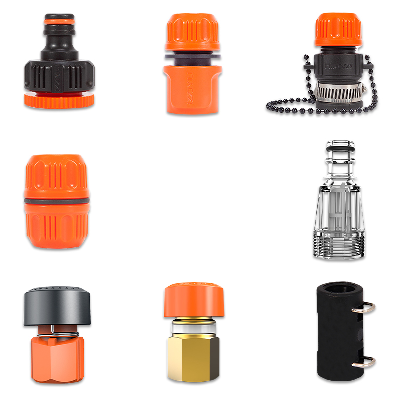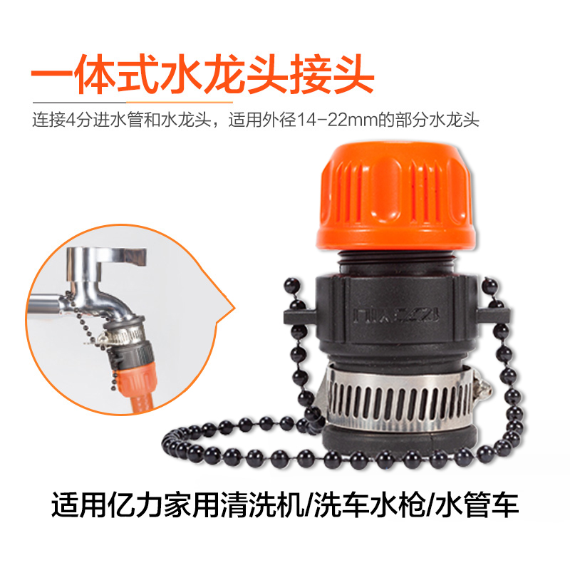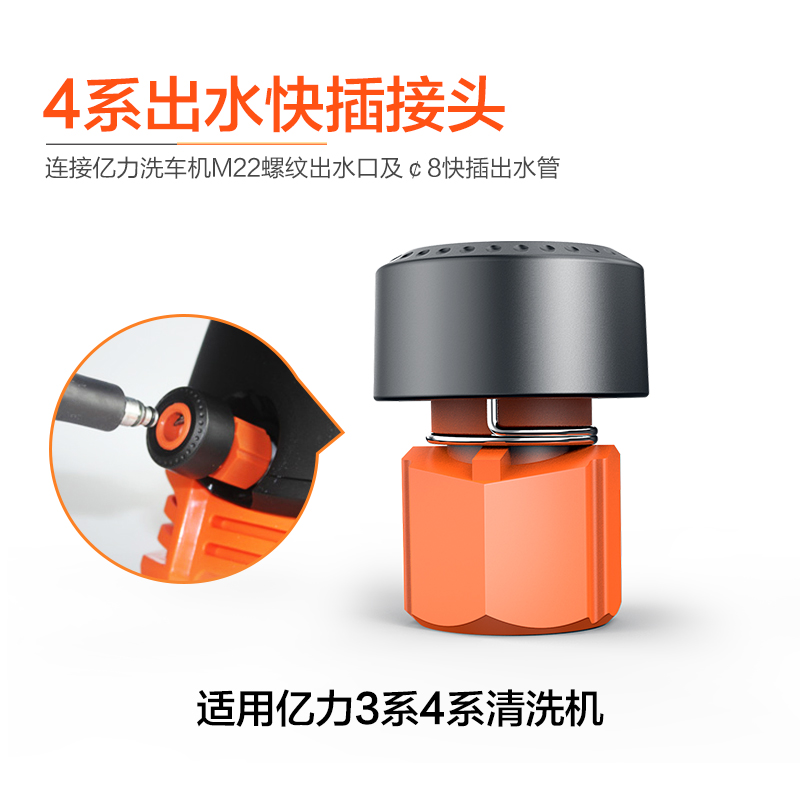 (1) Yili car washer accessories - exhaust valve (4 series) (2) Yili car wash machine accessories - filtered water intake nut (4-7 series) . (3) Yili car washer accessories - multi-function faucet connector (4-7 series) (4) Yili car washer accessories - water inlet quick plug joint (4-7 series) (5) Yili car washer accessories - nipple joint (4-7 series)