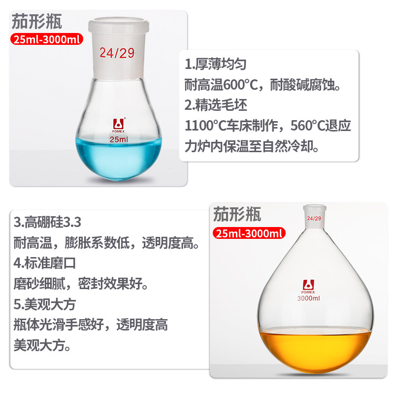 POMEX Egg-shaped Flask Egg-shaped Flask Single Opening Round Bottom Pear Shaped Bottle Egg-shaped Flask Egg-shaped Flask Rotary Steam Bottle 50100250500 1000 2000 3000ml Swivel Steam