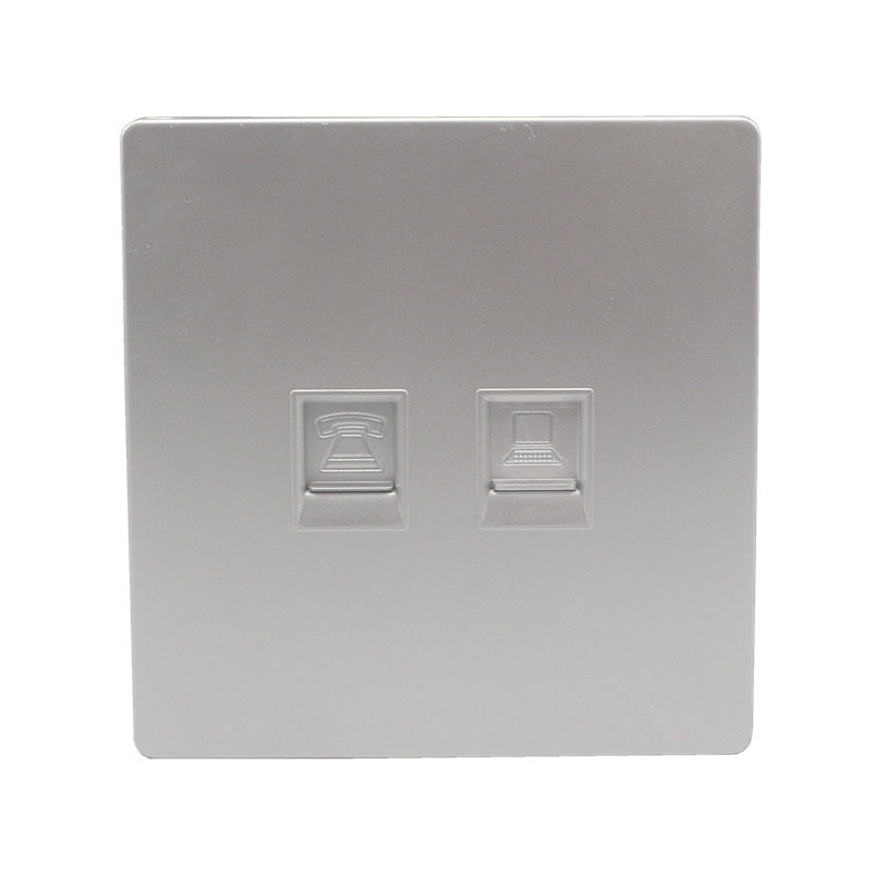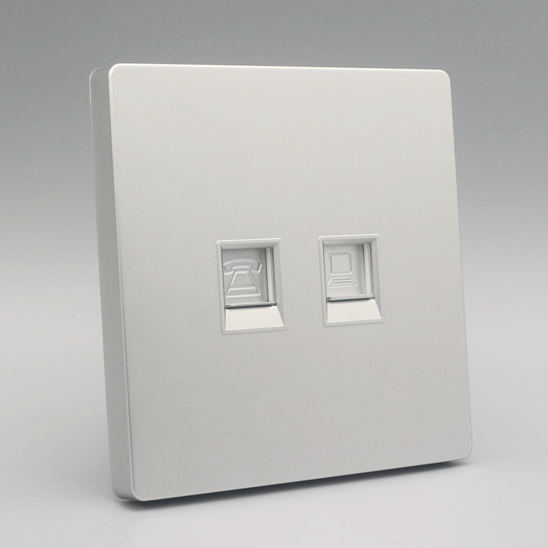 Silver dual-port six-category computer phone panel 1 network 1 telephone socket type 86 two-digit Gigabit Internet telephone socket