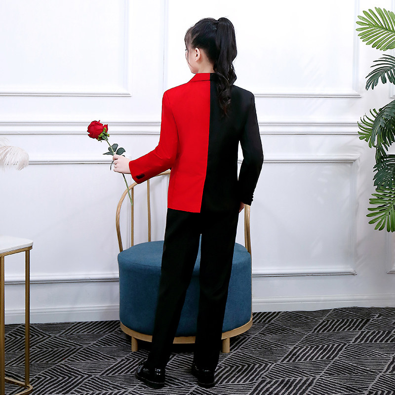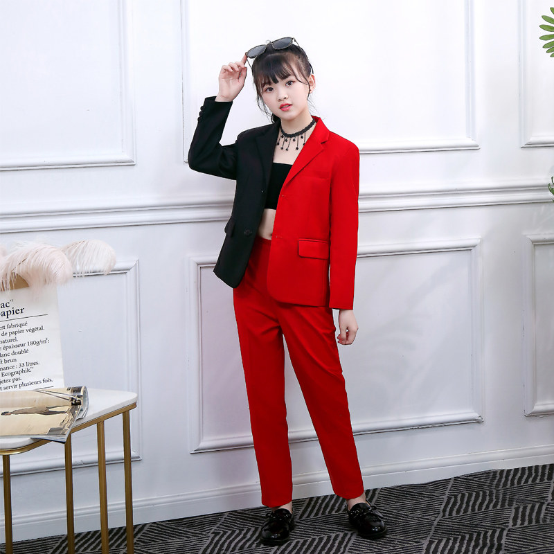 Color-block suit three-piece set (coat red pants collarbone necklace) color-block suit three-piece suit (coat black pants collarbone necklace) color-block suit four-piece suit (coat red pants