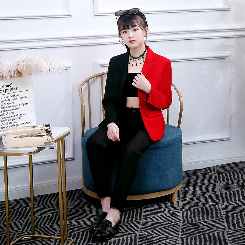 Girl suit suit fashion Korean girl model show catwalk small suit foreign style children's coat dress Spring
