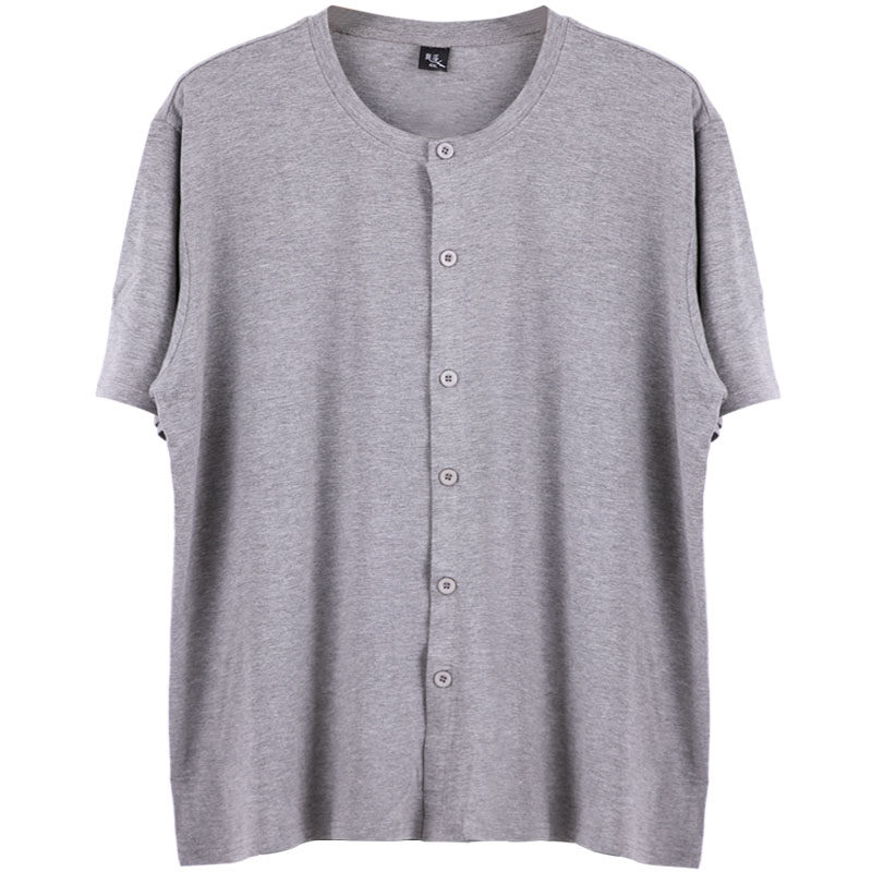 Middle-aged and elderly men's modal cotton large size cardigan men's thin section plus fertilizer to increase the cardigan open body father short-sleeved T-shirt