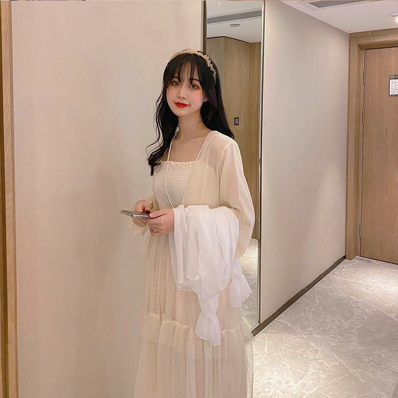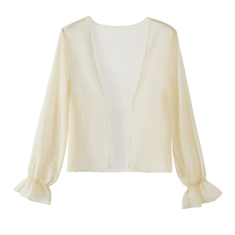2021 summer new Korean version of retro exterior short cardigan coat thin chiffon small coat horn sleeve sunscreen women
