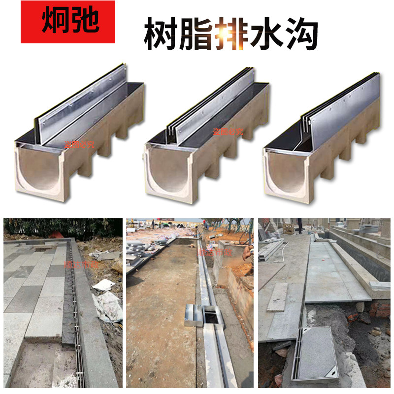 Finished Linear Drain Trench U Type Stainless Steel Row Sink Plastic Resin Grilles Gutter Gutter Cover