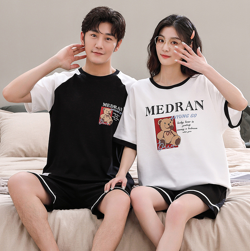 2 sets of couple pajamas summer cotton short-sleeved cute cartoon bear girl can wear men's home clothes suit
