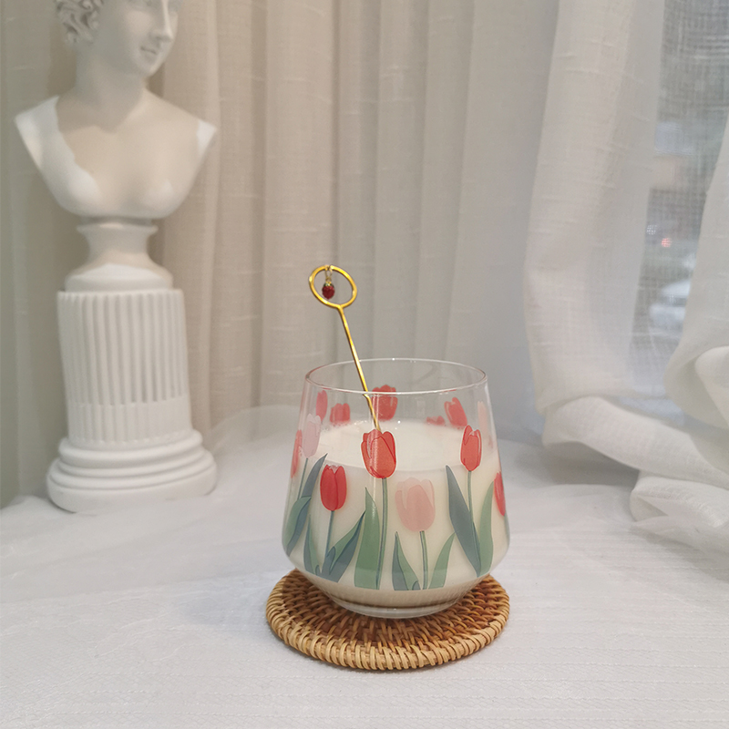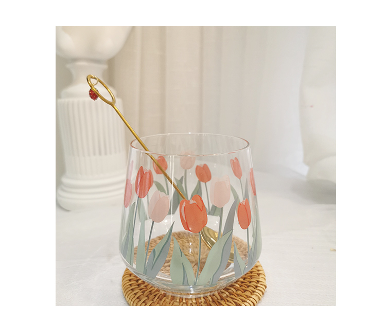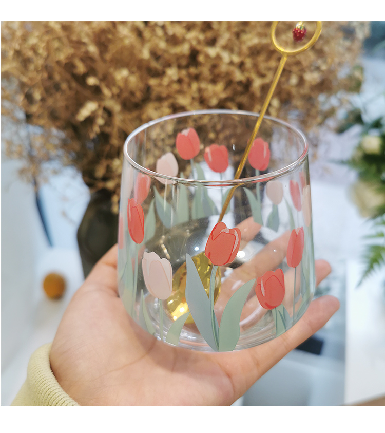 Korean ins with the same girl heart hand-painted tulip flower glass milk cup coffee cup water cup juice cup