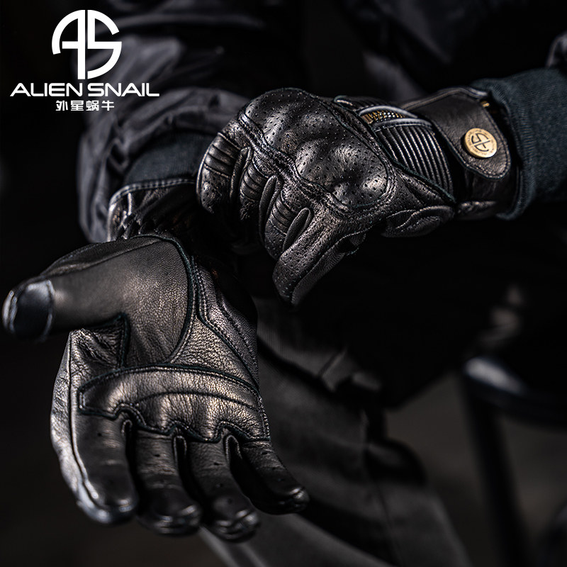 Alien Snail New V8 Locomotive Locomotive Retro Sheep Leather Touch Screen Gloves Anti-Fall Breathable Knight Equipped with Four Seasons