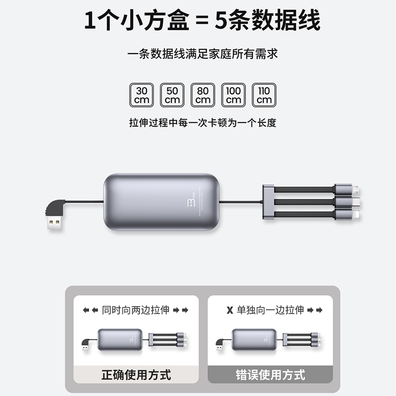 A few elements support corporate personal logo customization three-in-one data cable one-to-three extended Apple 13 charger Android fast charge type-c portable Huawei Xiaomi mobile phone universal retractable storage