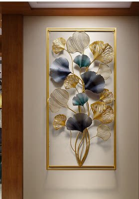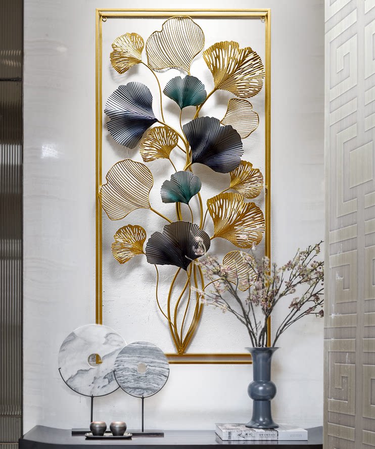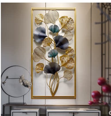 New Chinese Iron Art Pendant Wall Decoration Living Room Background Wall Xuan Guan Metal Wall Decoration Creative Ginkgo Wall Hanging