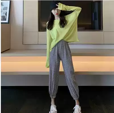 Corset pants pregnant women's new spring and summer thin nine casual trousers fashion wear ice silk striped pants pants