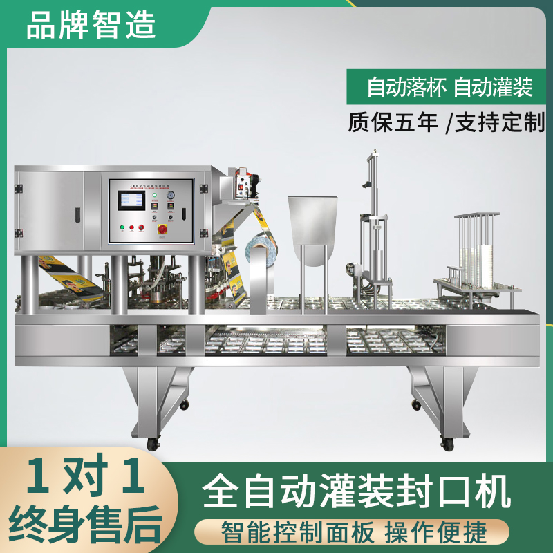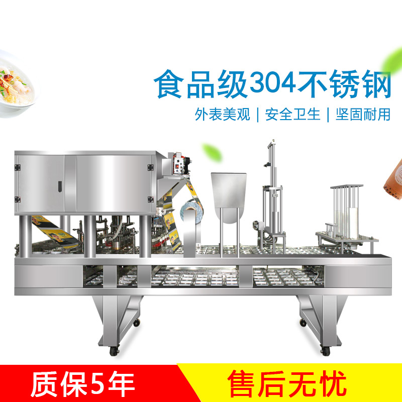 Fully automatic continuous liquid filling and sealing machine milk tea 8-treasure porridge chili sauce tofu box capping machine packaging machine