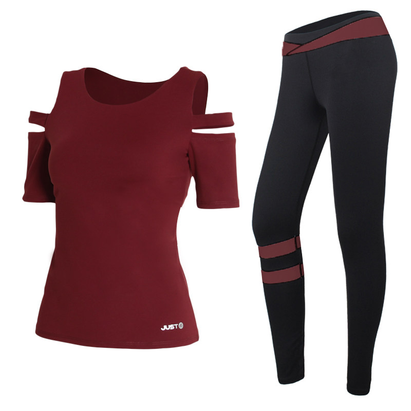 Spring and summer sportswear women's quick-drying sexy off-the-shoulder short-sleeved cropped pants slim casual running fitness yoga suit