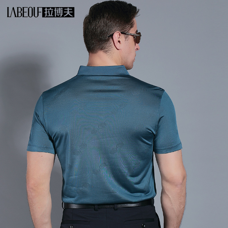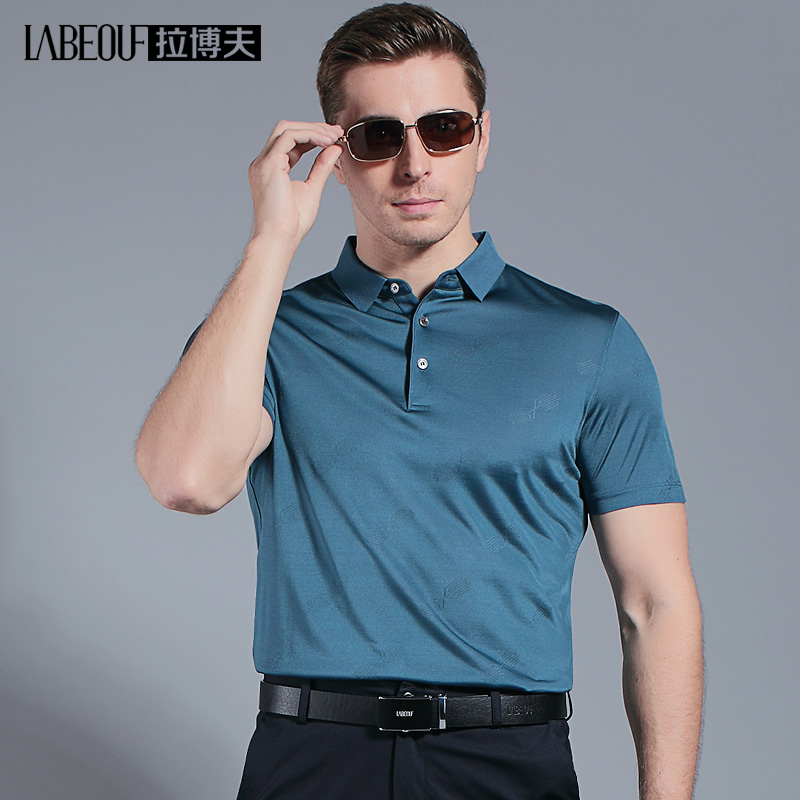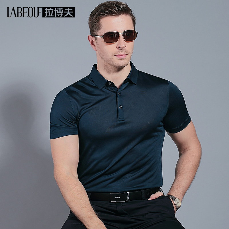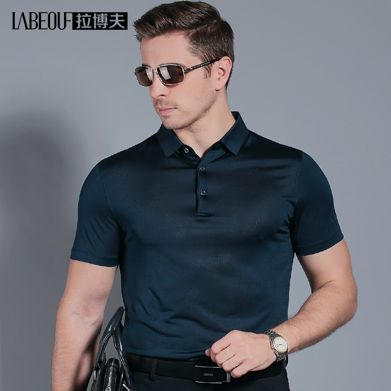 Labov Mulberry Silk Short Sleeve T-shirt Male Middle-aged Father Summer Clothing Loose Business Pure Color Men's Clothing POLO shirt
