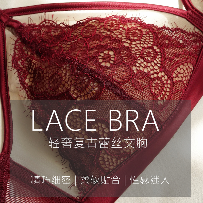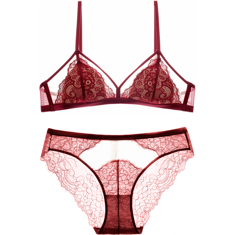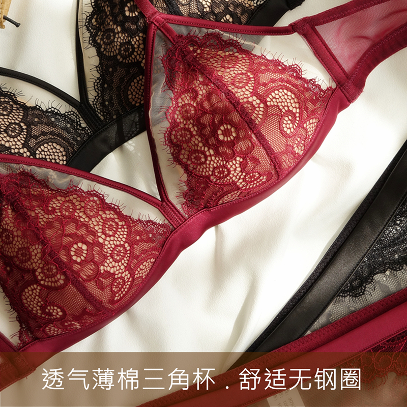 French bra lady without steel ring thin small chest taste taste lace gathering deep V triangle lingerie set new