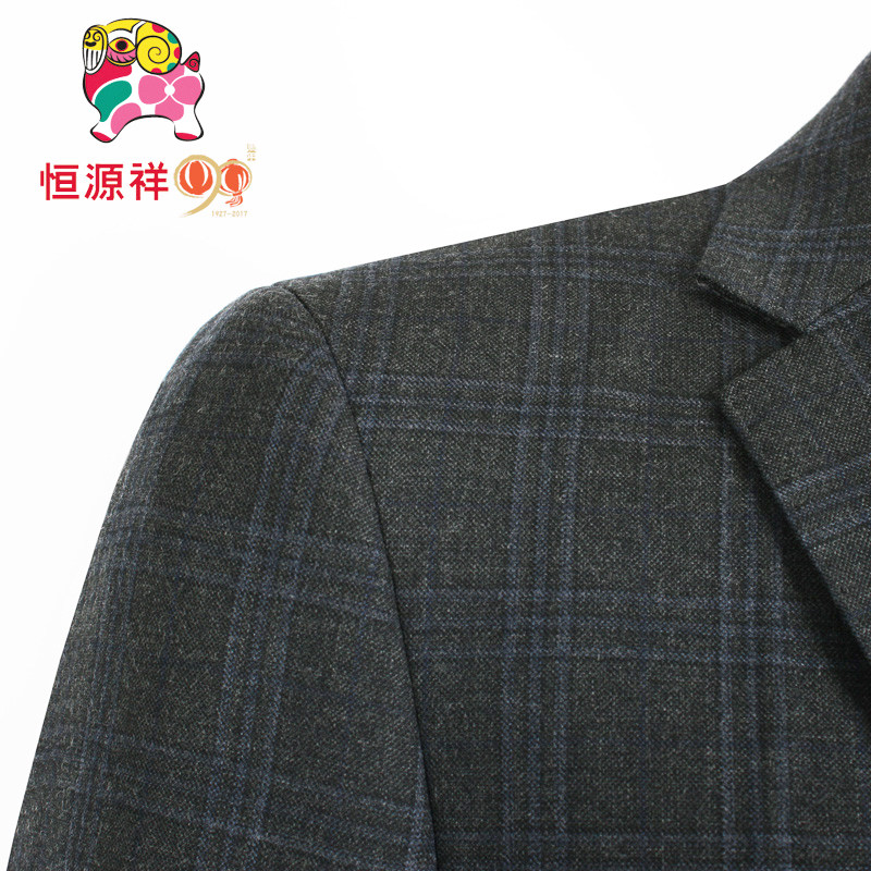 Hengyuan Color Yat Men Middle Age Business Leisure Suite Men Mao Suit Single West Fall Gray Plaid Top