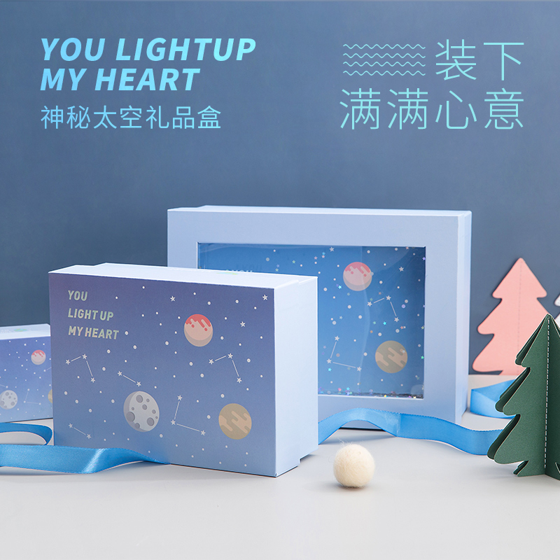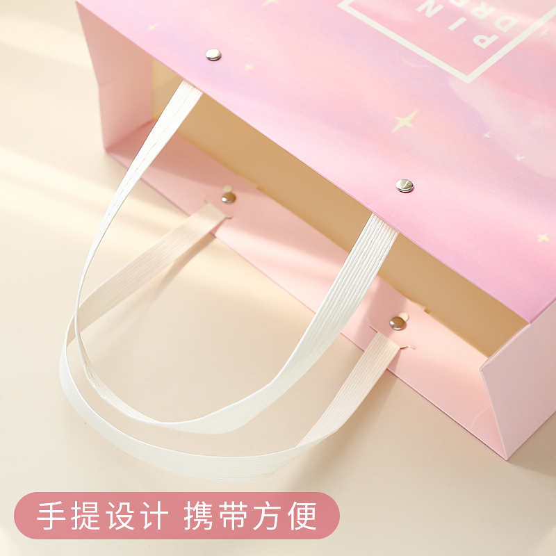 Blue fruit gift bag Dream starry sky ins wind paper bag Large good-looking portable paper bag Girls birthday gift box Simple objects natural pink girl heart burst gift packaging decorative bag