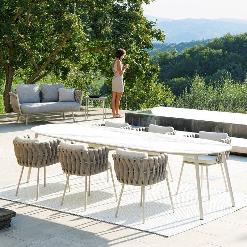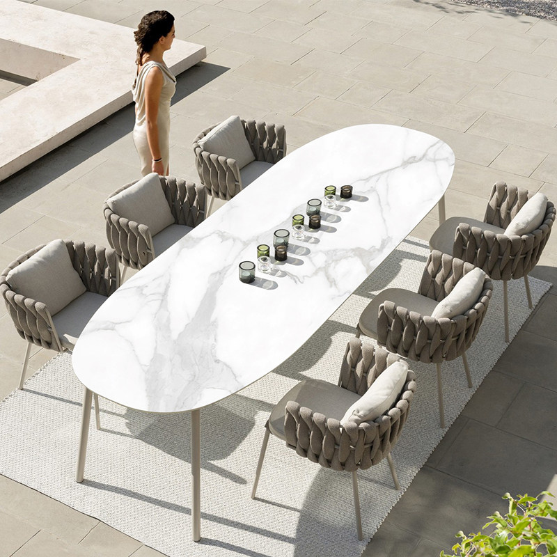 Outdoor table and chair Garden combination Simple leisure Outdoor high-end villa Garden hotel open-air table rock plate dining table and chair